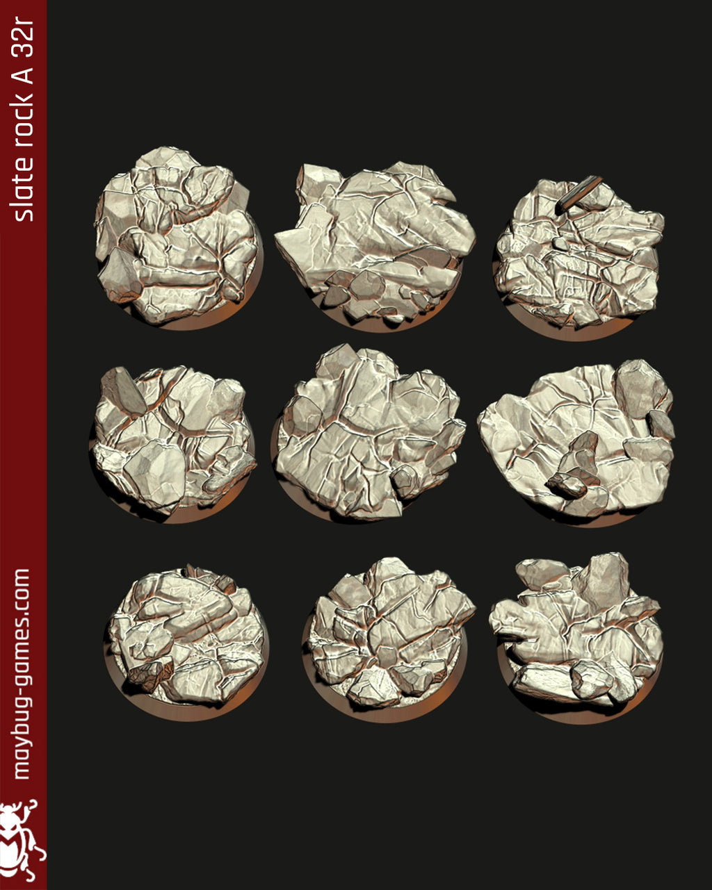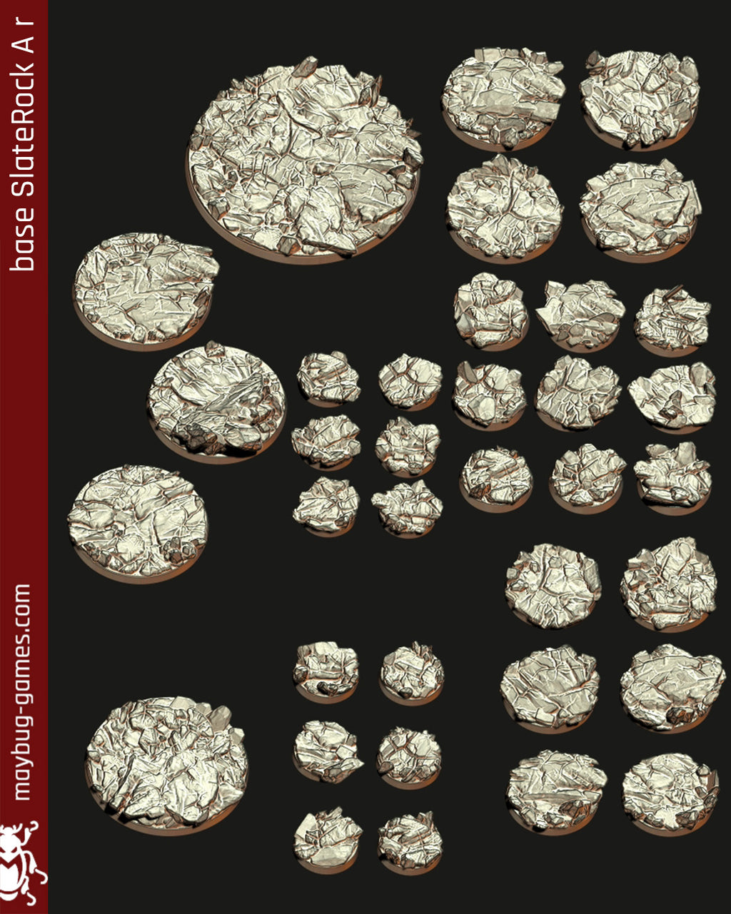 Round bases, physical items.Designed and exclusively produced by Maybug Games.Durable resin, highest quality 3d printers. Simple post processing advised (sanding).Size is in millimeters, bottom dimension. 25r = 25 millimeters round (approximately)